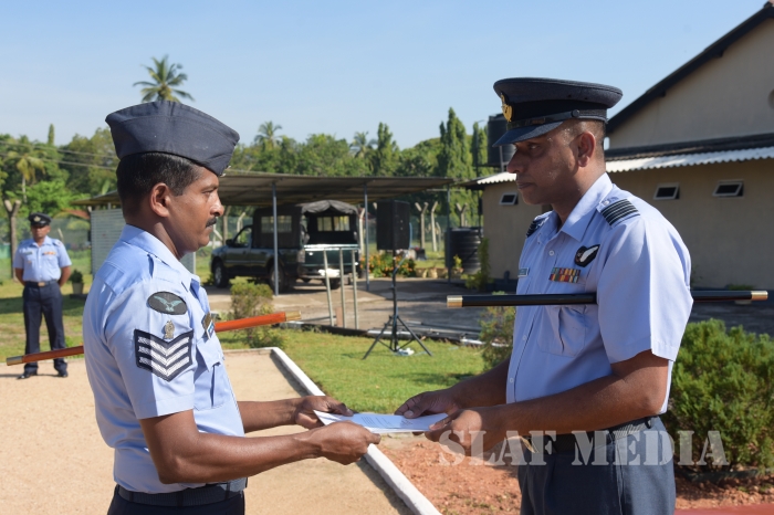 The Commanding Officer inspected the parade at the E & T E Wing and appreciated 19545 F/Sgt Adhikari AMN for his contribution for the Wing and further, congratulated 27359 Sgt Darshana Kumara HAS for being the best Electronics Engineering Tradesman of the Year at the SLAF Excellence Award 2016.