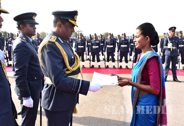 The Commander awarded commendations to 16769 Warrant Officer KRSN Ranasinghe (Ops Grd I) and Mrs. Tharanga (Civil) for their meritorious contribution for the betterment of the SLAF.