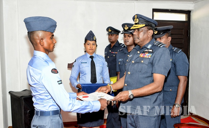 The Commander awarded commendation to 025742 Leading Aircraftsman Guruge HPGKG (Carpenter III) for his meritorious contribution for the betterment of the SLAF.