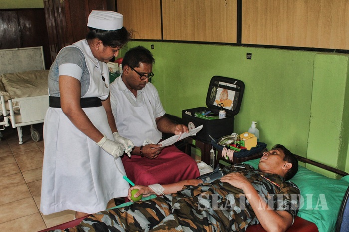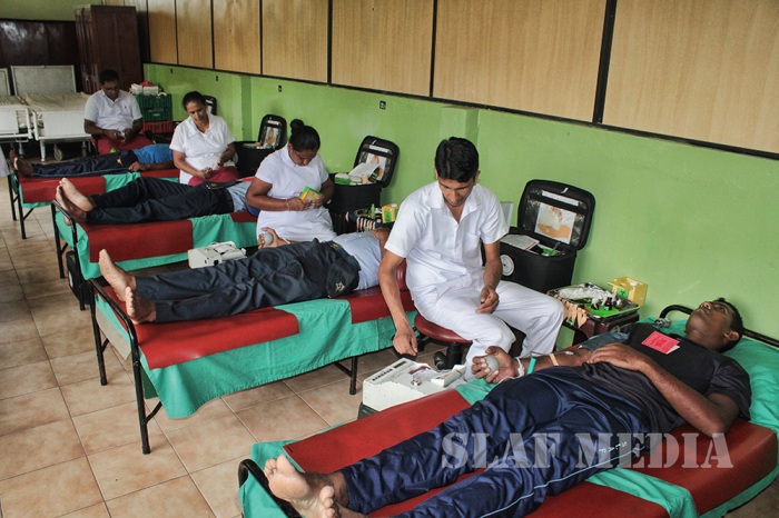 Further, a blood donation campaign was organized on 24 May 2017 at the Base Hospital, SLAF Base Rma, in collaboration with the National Blood Transfusion Service. A large number of volunteers arrived to donate since its commencement at 0900 hours. More than 100 pints of blood was collected from over 150 volunteers, making the event a success.