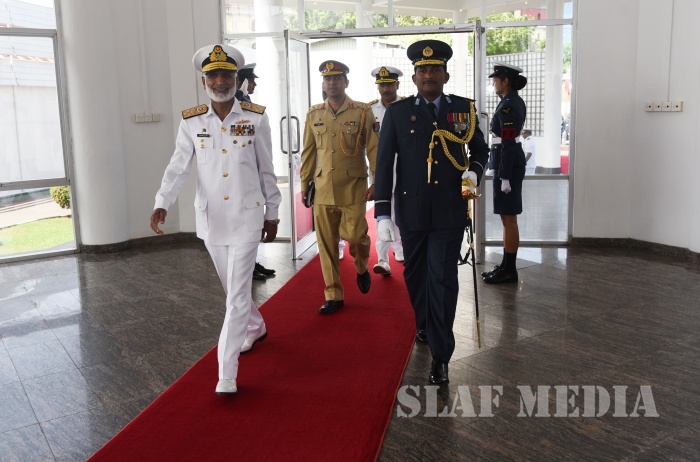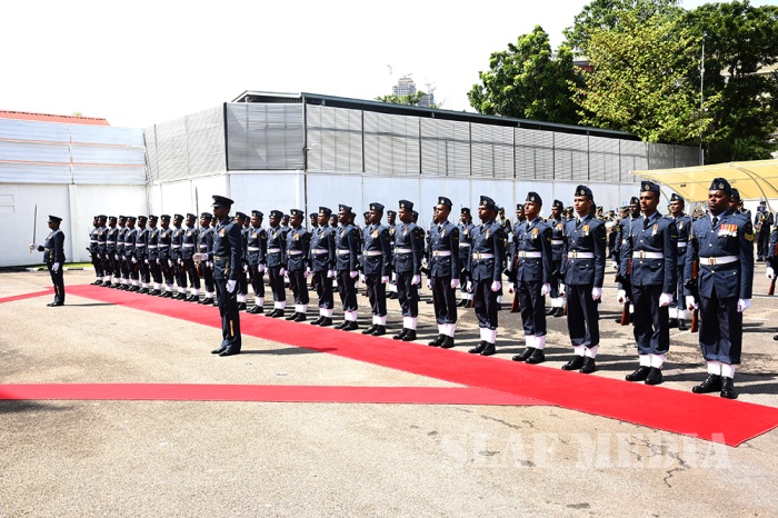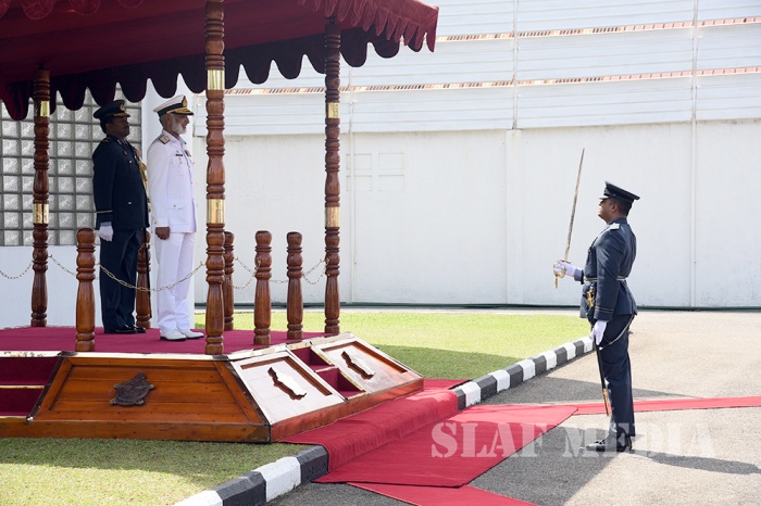 The Chief of Naval Staff was received upon arrival and was accorded a Guard of Honour by the Colour Squadron of the SLAF.