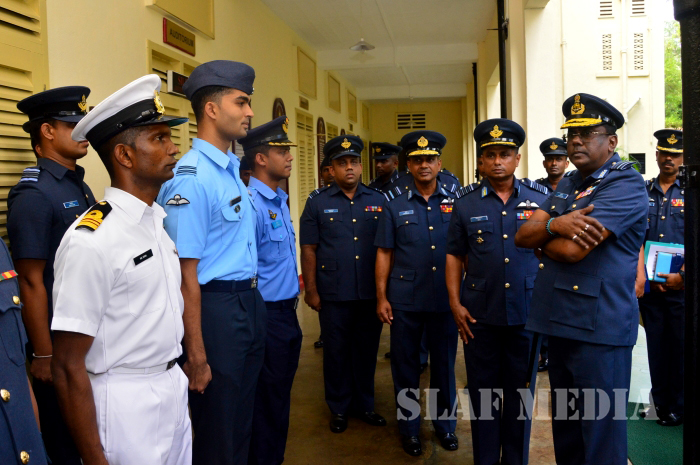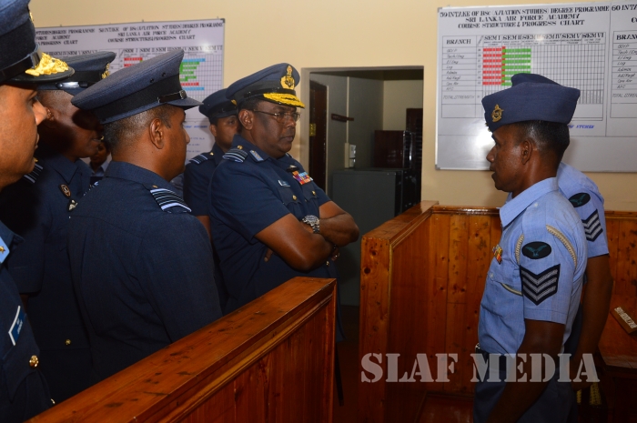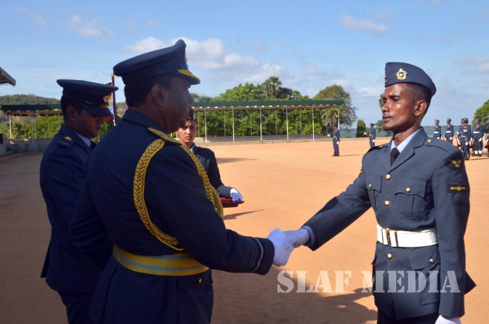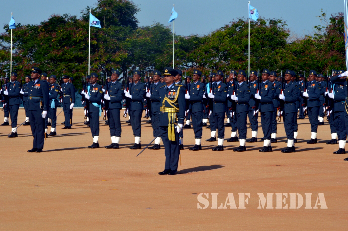 The Commander was welcomed upon arrival for the inspection, after which he reviewed the Parade commanded by the Commandant of SLAF Academy China Bay Air Vice Marshal PDKT Jayasingha.