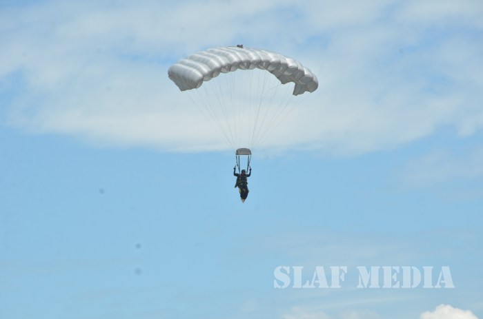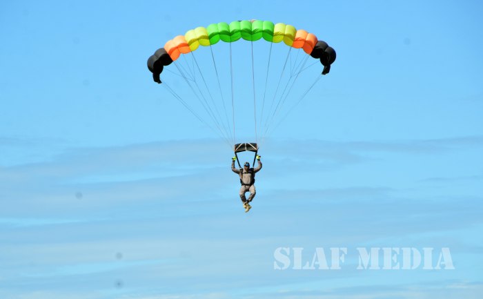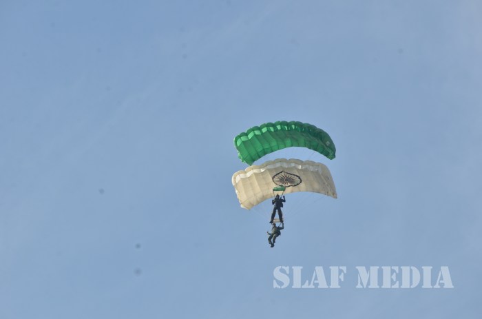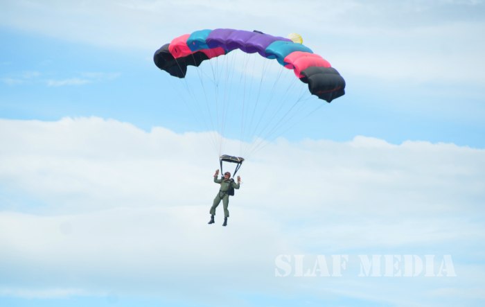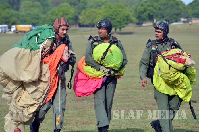 Most of the IAF jumpers were well experienced combat free fallers. This proved an invaluable opportunity for Squadron Leader MAV Gomes and Sergeant Liyanarachchi who got to make jumps using IAF combat free fall chutes for the first time on Sri Lanka soil, adding a golden inscription to SLAF parachute history.
