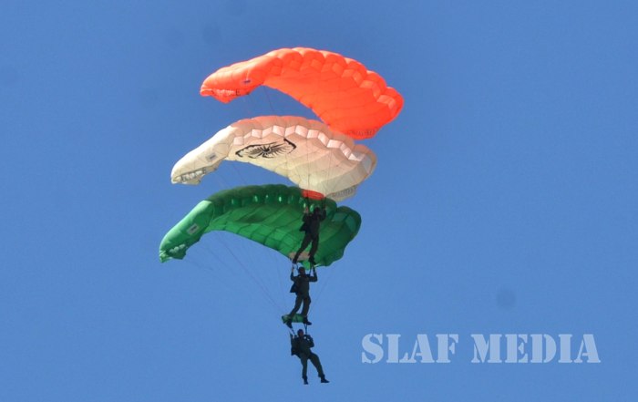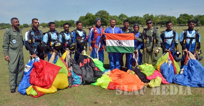 A delegation from the Indian Air Force (IAF) Sky Divers Team visited SLAF Station Ampara from 10th to 13th of July 2017, in order to conduct combined sky diving exercises in view of exchanging knowledge and techniques for future cooperation between the IAF and SLAF.