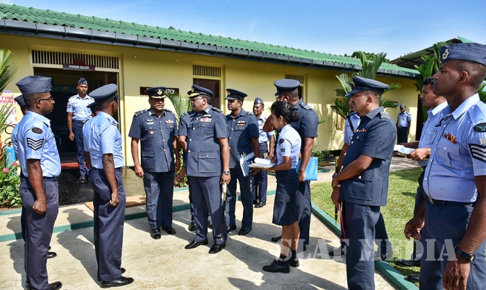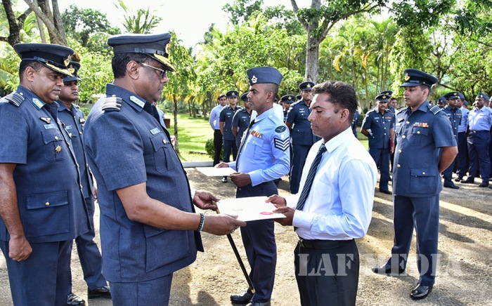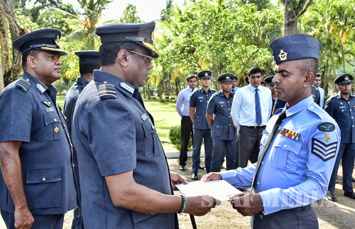 During the course of the inspection the Commander visited all areas of the Station. Certificates of Commendation were awarded to 31380 Flight Sergeant Sunilnanda (Ops Grd) and Mr. WD Anura Shantha (Labour) for the valuable service rendered for the benefit of the Station.