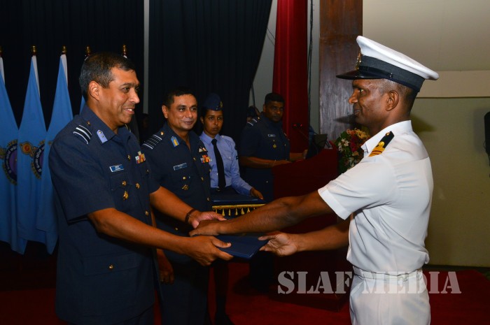 The ceremony marked the end of the 14-week Course attended by a total of 25 officers in the ranks of Squadron Leader and Flight Lieutenant. 22 officers from the Sri Lanka Air Force, one officer in the rank of Lieutenant Commander from the Sri Lanka Navy, one officer from the Bangladesh Air Force and one officer from the Indian Air Force.