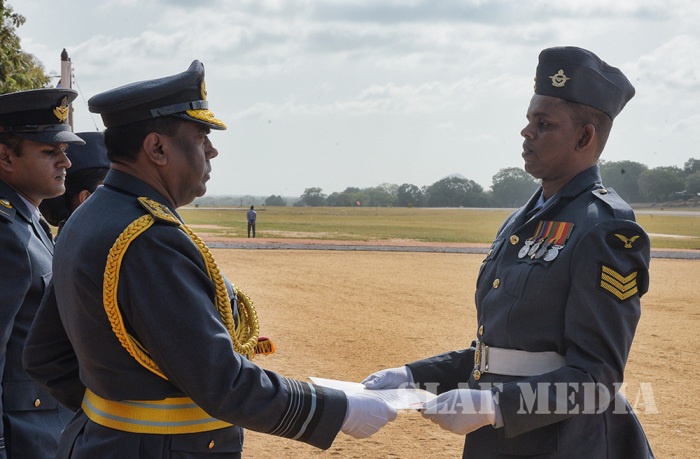 The Commander reviewed the parade which was commanded by the Base Commander Air Commodore HN Abeysinghe.
