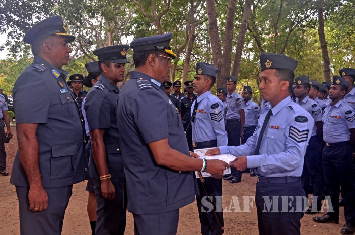 17911 Flight Sergent Asanka RAMN (Ops Grd) and 30320 Sergent Muhandiram TMHK (Catering Assistant), were commended by the Commander for exceptional dedication in the execution of duties during the past year.