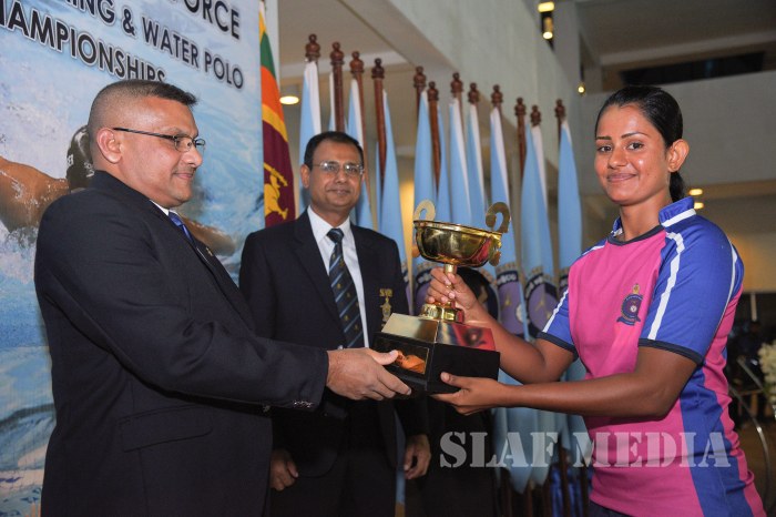 SLAF Base Anuradapura & SLAF Base Hingurakgoda emerged men's & women's champions respectively at the Inter Unit Swimming & Water Polo Championship 2017 concluded at SLAF Base Ratmalana yesterday (23 August 2017).