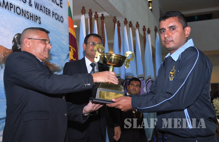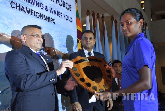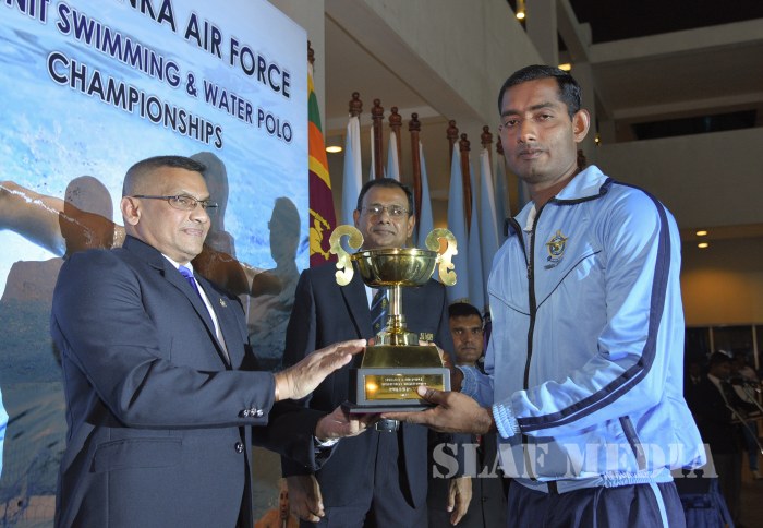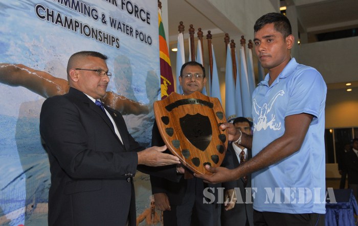 Deputy Chief of Staff of the SLAF Air Vice Marshal Mohan De Zoysa witnessed the finals as the Chief Guest. Members of the Air Force Board of Management, Director Administrations and Chairman SLAF Swimming Air Vice Marshal CP Welikala and a number of senior officers were also present at the finals.