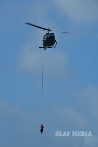 The operation was carried out with 2 helicopters of No 4 Squadron. The Commanding Officer No 4 Squadron, Wing Commander Asela Kuruwita and the Commanding officer Regiment Special Forces Wing, Squadron Leader Thusitha Nandaka Kumara led the training program.