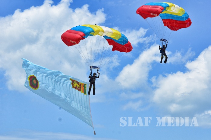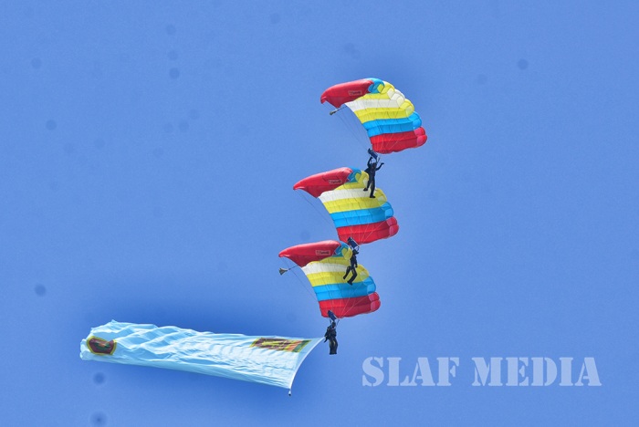 The Sky divers of the SLAF performed a magnificent show, exiting at 7000 feet from the Helicopter.