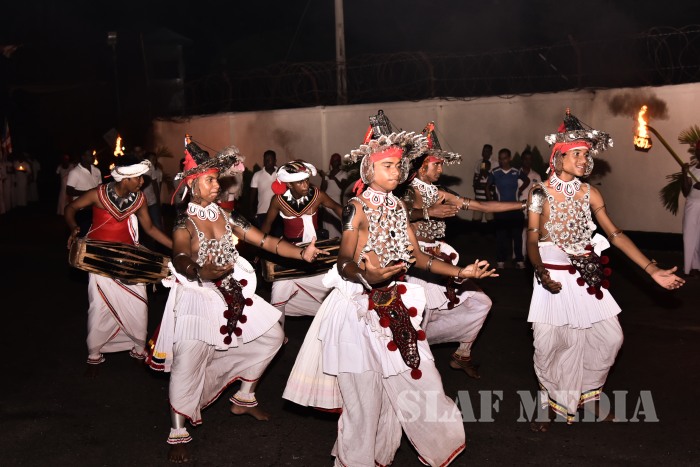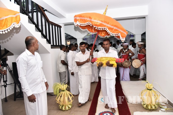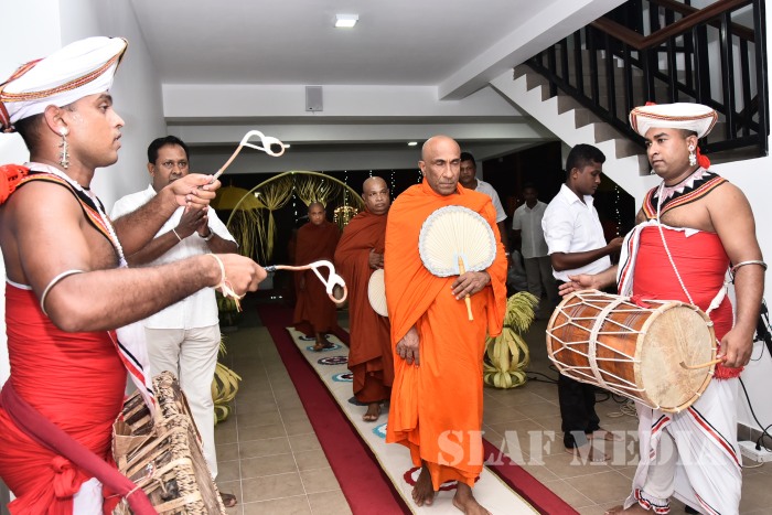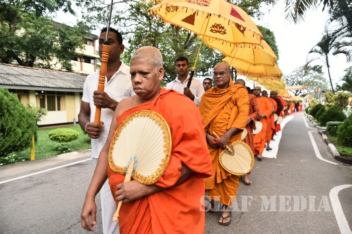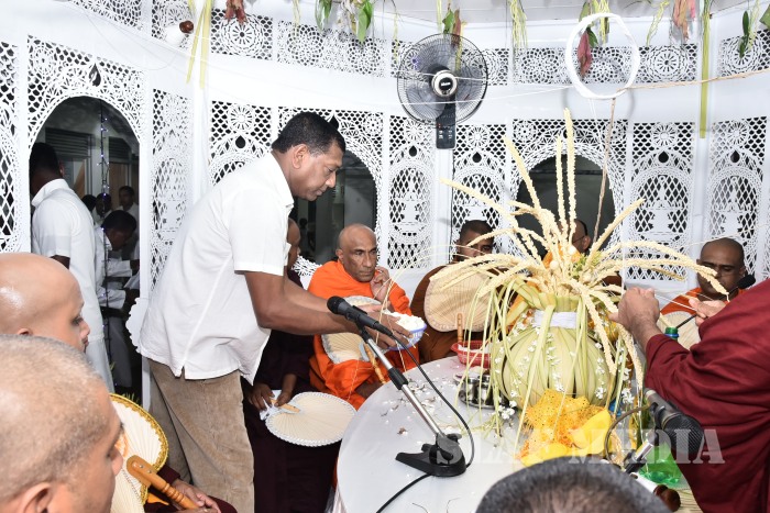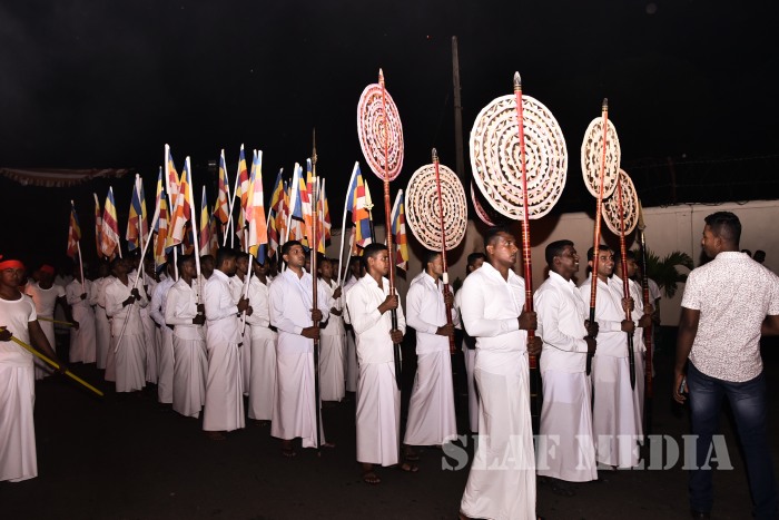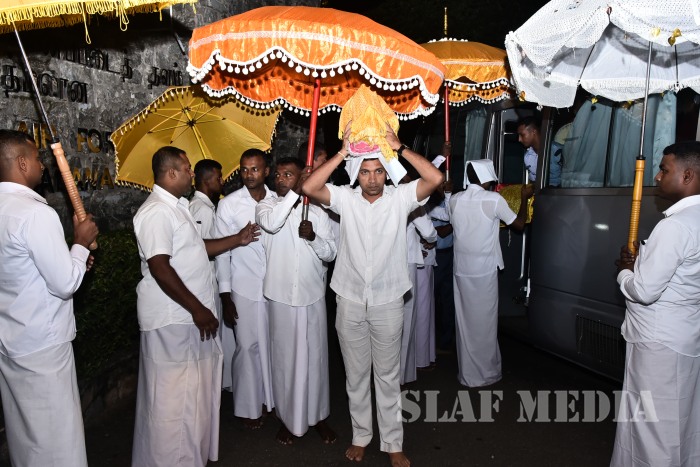 The ‘Reliquary’ (Karaduwa) was taken to SLAF Base Rathmalana in a colourful procession and placed in the ‘Pirith Mandapa’ by the Base Commander of the SLAF Base Rathmalana Air Cdre RP Liyanagamage. Subsequently an all night pirith chanting and alms giving was accorded to the venerable Maha Sangha on Wednesday.