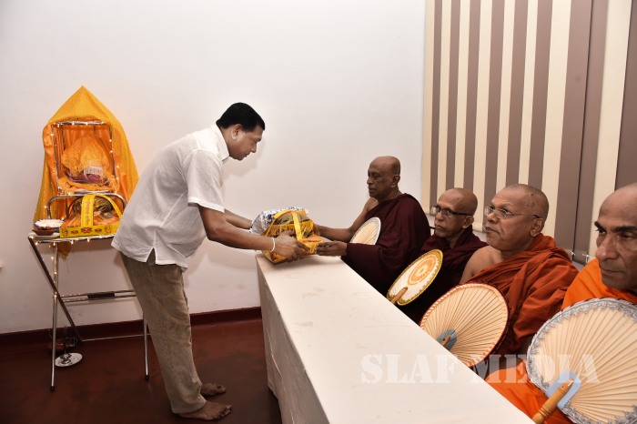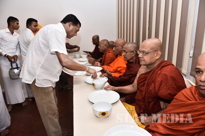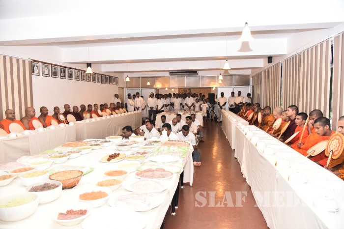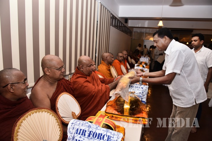 The annual Pirith Chanting ceremony at SLAF Base Rathmalana was held on 17 October 2017 followed by an almsgiving for 50 members of the Venerable Maha Sangha on 18 October 2017 at the newly constructed Base HQ Building, SLAF Base Rathmalana.