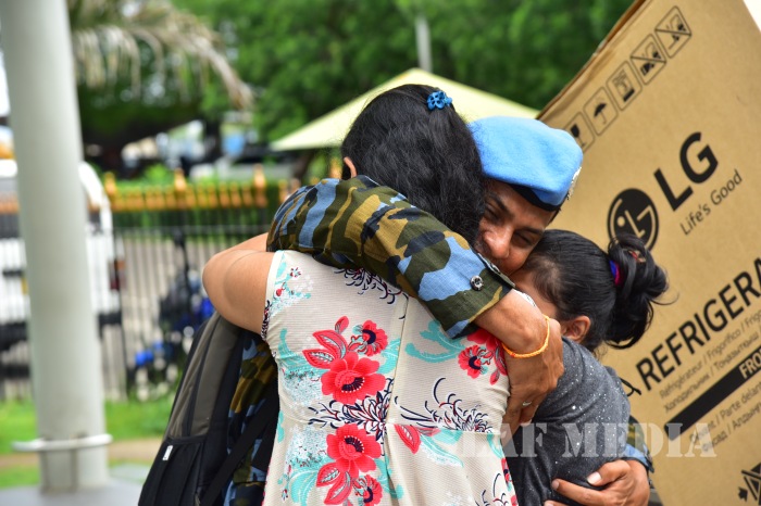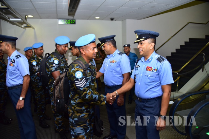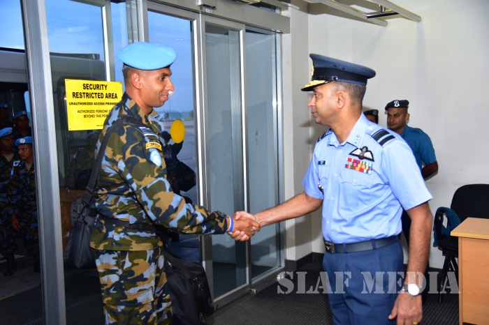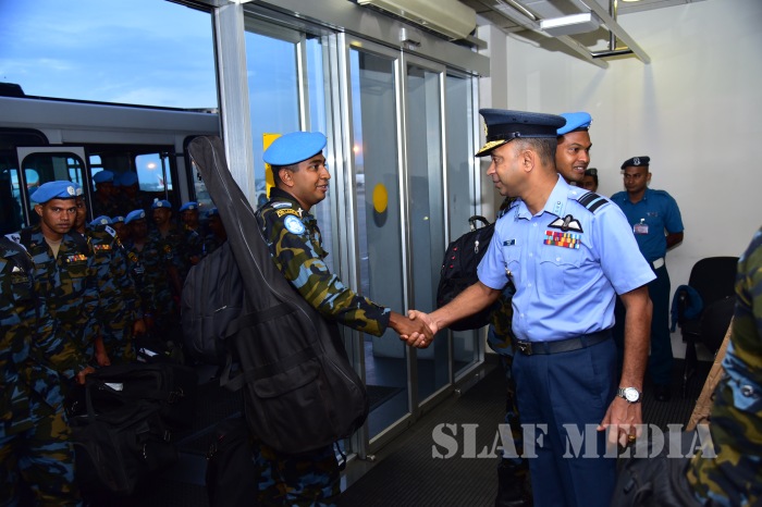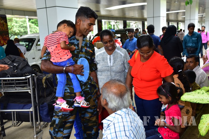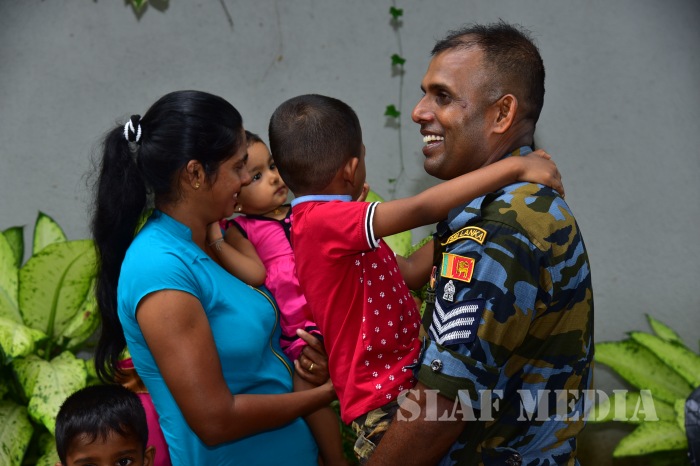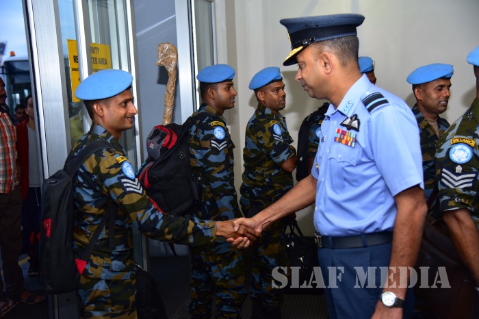 Base Commander SLAF Base Katunayake Air Vice Marshal Prasanna Payoe, Senior officers of the Air Force and the family members of the arriving personnel were present at the Arrival lounge.