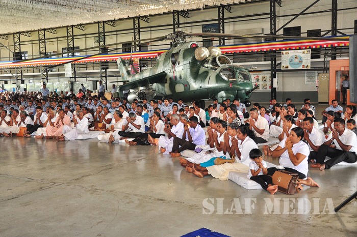 The All Night Pirith Chanting Ceremony followed by an alms giving to the Venerable Maha Sanga was held at No 09 Attack Helicopter Squadron on 18th and 19th November 2017 with the participation of the family members of deceased war heroes.