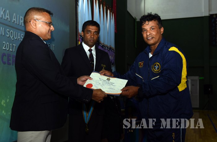 The Champion SLAF Base Ratmalana team consisted of Warrant Officer WMRP Fernando, Flight Sergeant Kumara ACCP, Sergeant Chandana RPM, Corporal Tharaka KK, LAC Wimalarathana MGPD, LAC Jayasooriya JRASM, Mr. SW kumara Silva.