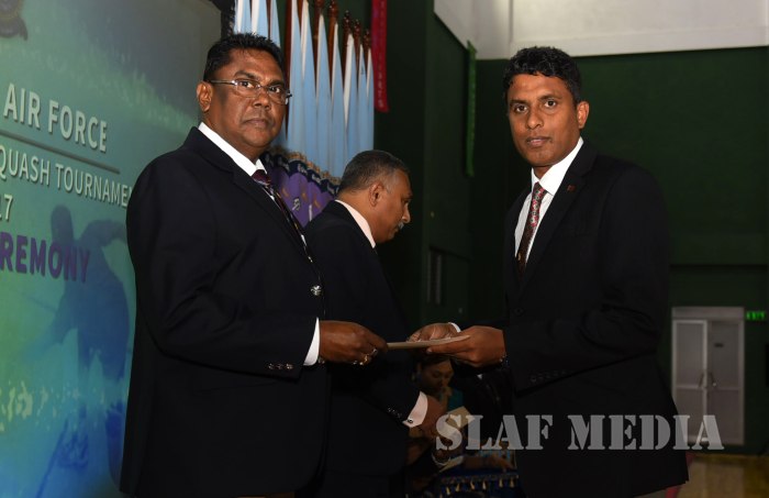 Air Force Board of Management, Chairman SLAF Squash Air Commodore SD Kotage, Officers and Other ranks were also present at this event.The Open tournament was conducted under five categories, namely Men’s over 35, Men’s over 45, Men’s Open, Men’s Novices and Women's Novices. The results of the open tournament are as follows: