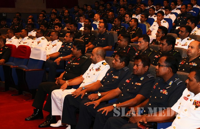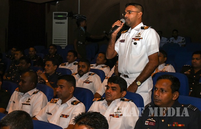 The Commandant of the DSCSC Major General JR Kulatunga, the Chief Instructors of the Army, Navy and Air Wings, Brigadier P R Wanigasooriya, Commodore D N S C Kalubowila and Air Commodore D K Wanigasooriya, faculty members and the permanent staff were also present during the address.