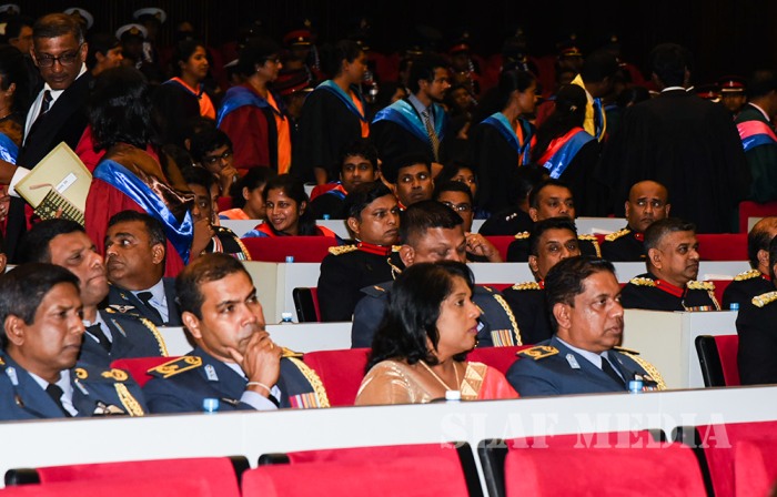 The event was held with the participation of foreign delegates, Cabinet Ministers, the Secretary to HE the President, the Secretary Defence, Chief of Defence Staff Admiral Ravindra Wijegunaratne, the Commander of the Army Lieutenant General Mahesh Senanayake, the Commander of the Navy Vice Admiral Sirimevan Ranasinghe, Commander of the Air Force Air Marshal Kapila Jayampathy, the Chancellor, Vice Chancellor of the General Sir John Kotelawala Defence University, Academic & Non Academic Staff of KDU, Senior Officers of Tri Services, Military and Civilian Graduates, parents and relatives of the graduates.