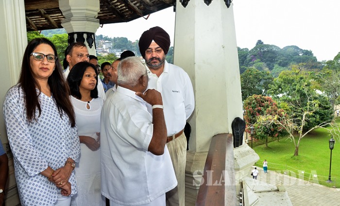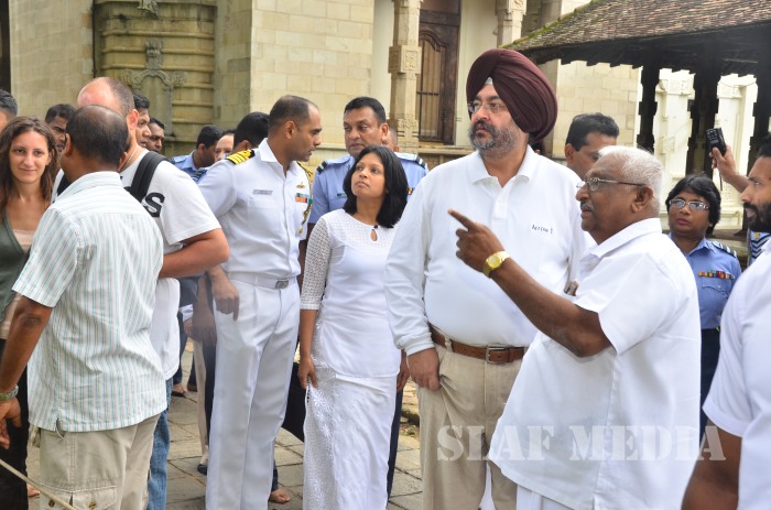 The Chief of the Air Staff of the Indian Air Force, Air Chief Marshal Birender Singh Dhanoa, paid his obeisance to the sacred Sri Dalada Maligawa in Kandy on 13th of December 2017 together with other members of his delegation. On arrival the Air Chief was received by the Commanding Officer of SLAF Station Sigiriya Wing Commander DCDB Alwis. The Air Chief Marshal met with the Diyawdana Nilame of the Sri Dalada Maligawa and also visited the World International Buddhist Museum in Kandy.