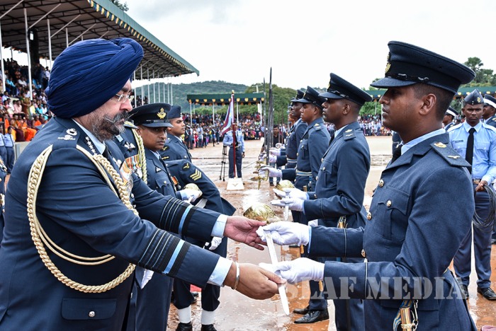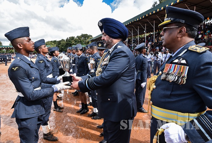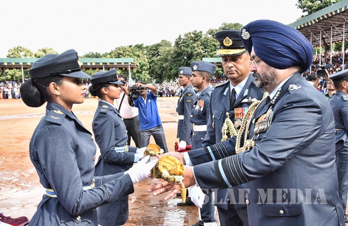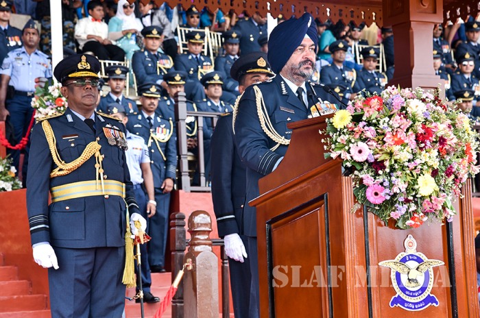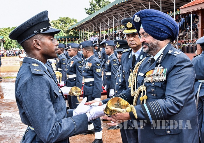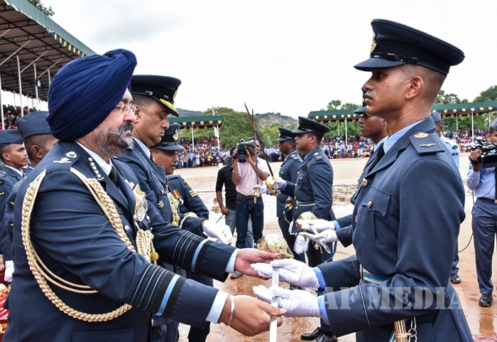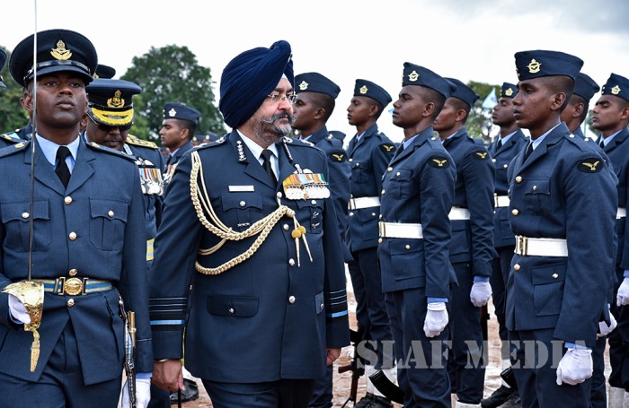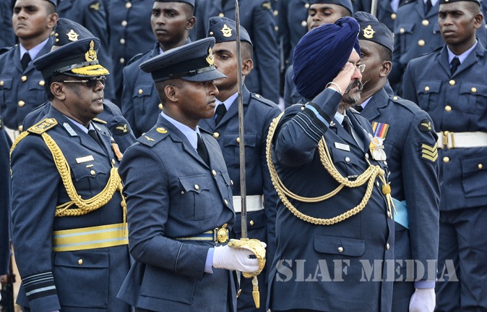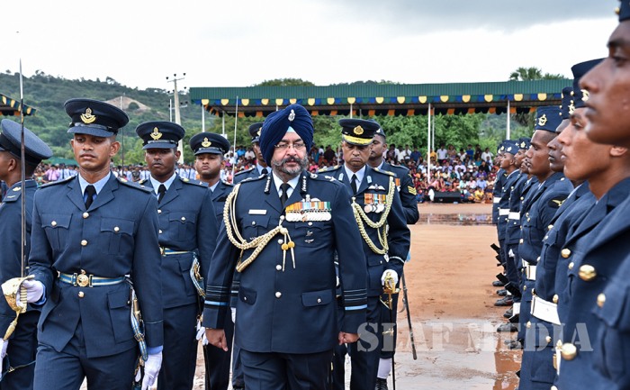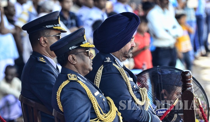 The visiting Chief of the Air Staff of the Indian Air Force, Air Chief Marshal Birender Singh Dhanoa was the Chief Guest on invitation of Commander of the Sri Lanka Air Force Air Marshal Kapila Jayampathy when 40 Officers from the No 57th Intake of Officer Cadets and No 30th Kothalawala Defence University Cadets Intake along with 765 Airmen and Airwomen of the 165th Regular Airmen Recruit Course , 35th Regular Airwomen Recruit Course, 128th Volunteer Airmen Recruit Course, 10th Volunteer Airwomen Recruit Course, 33rd Direct Entry Airmen and Airwomen Recruit Course passed out from the SLAF Academy China Bay during the morning hours of 14 December 2017.