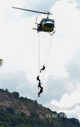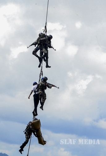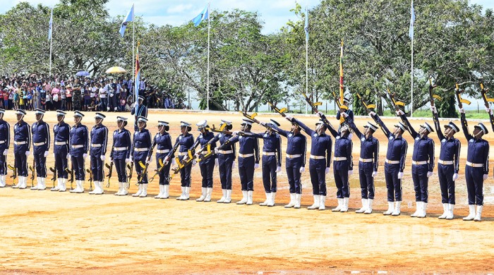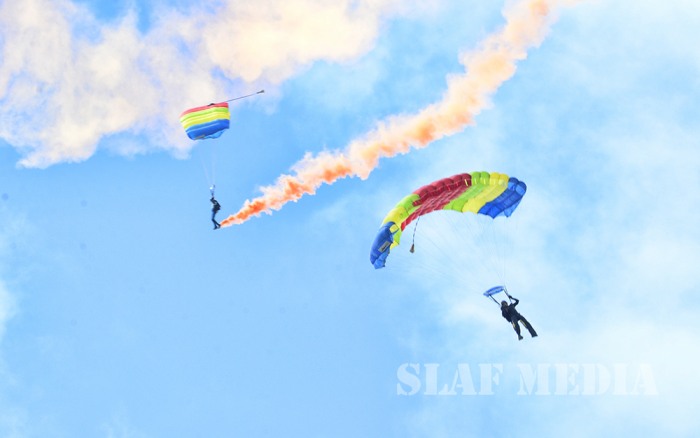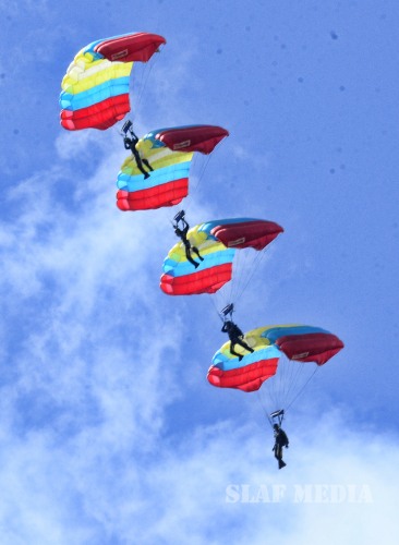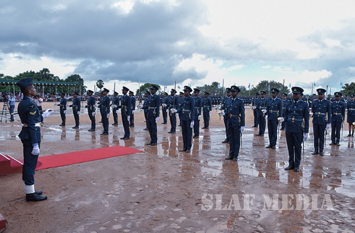 The Officer Cadets/Lady Officer Cadets have successfully completed 3 years of rigorous training while the Airmen/Airwomen followed a 20 week Basic Combat Training programme. The Parade, which was commanded by the Group Captain HTH Dharmadasa, was followed by an Aerobatic Display of PT6 Aircraft, flown by Qualified Flying Instructors (QFIs) of the No.1 Flying Training Wing. This was followed by a Band Display, Drill Display by SLAF Colour Wing, Unarmed Combat Display, Parachute Display, and a Camp Attack Display.