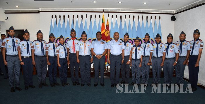Air Scout Group Air Rover Scouts 'BP' badge and Senior Air Scouts President Scout badge awarding ceremony was held today (20thDecember 2017) at Air Force Headquarters. The Commander of the Air Force Air Marshal Kapila Jayampathy awarded One BP (Baden Powell) Badge and twelve President Scout Badges during the ceremony. The list of recipients is given below.