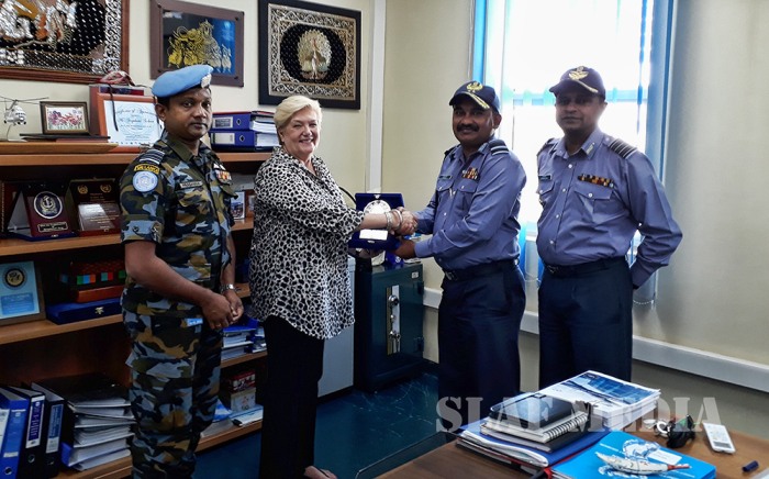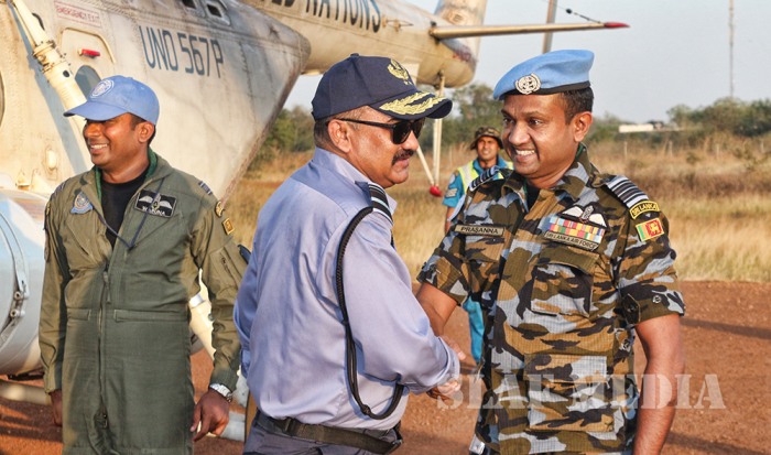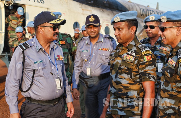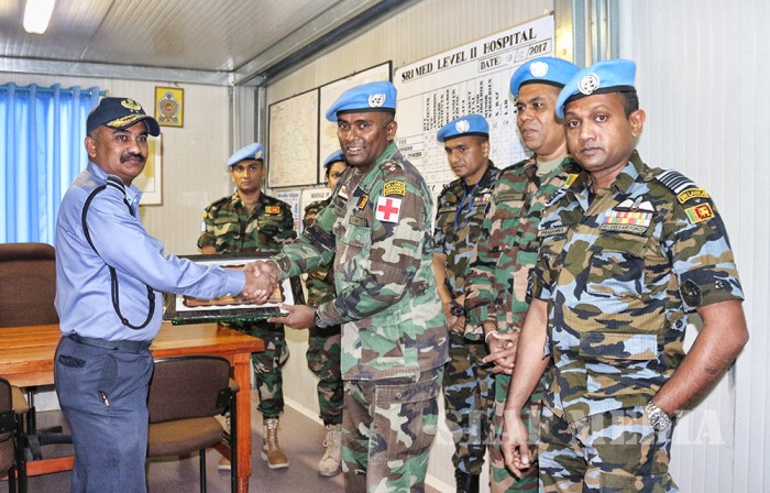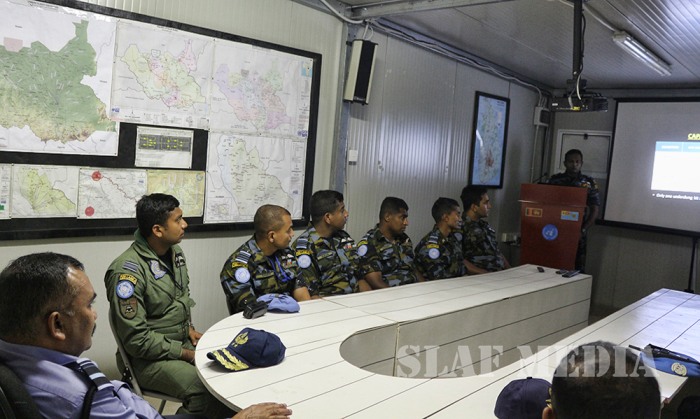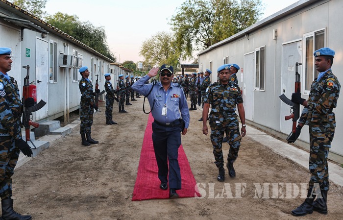 The higher level supervision visit of the Sri Lanka Aviation Unit in United Nations Mission in South Sudan (UNMISS) was conducted by the Director Ground Operations (DGO), Air Vice Marshal KFR Fernando from 16th to 20th December 2017. The Contingent Commander Wing Commander KAPS Kuruwita welcomed the DGO and Group Captain DWR Jayawardana at the Bor Airport and escorted them to the UN compound where the Sri Lanka Aviation Unit is situated. After welcoming to the contingent with a street line, the DGO declared open the newly constructed Sri Lanka Aviation entrance pandal to commemorate the event. Thereafter, the Contingent Commander presented him with a briefing on the role and function of the Unit.