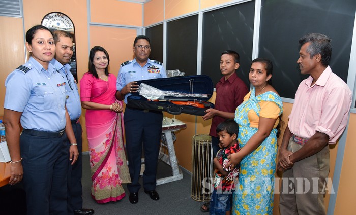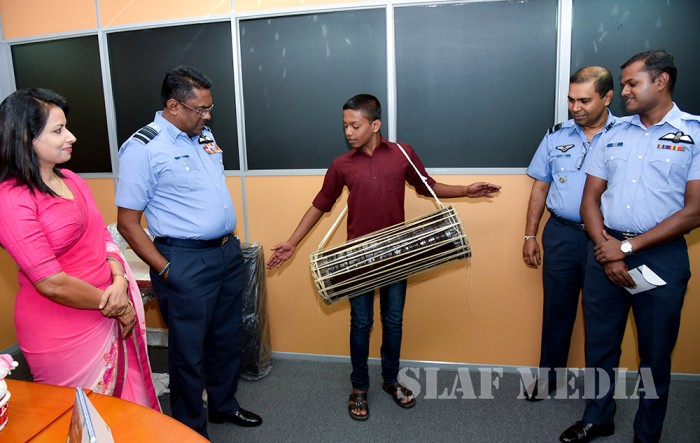 Music and dancing equipment were handed over to WD Tharaka Lakmal (16 years old) who is a student of Ahelape Vidyaraja College at Akuressa for his aesthetic studies. This donation was made by the SVU on a request made by the recipient to the Chairperson SLAF SVU.