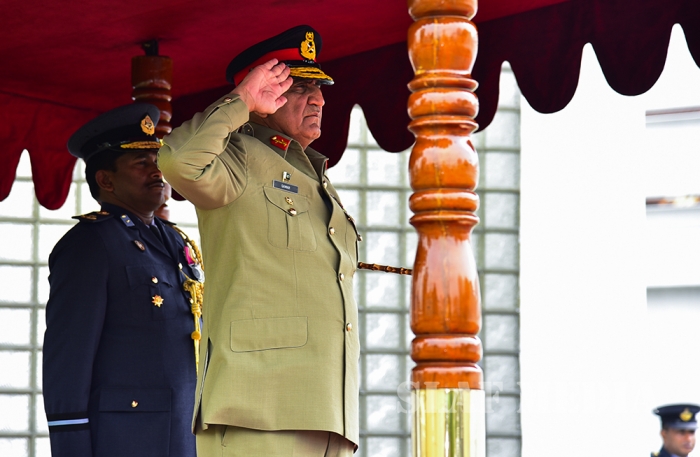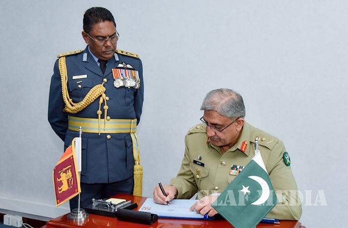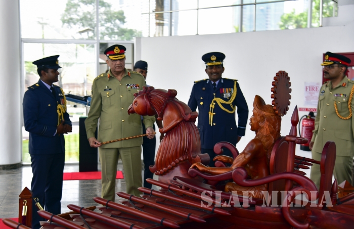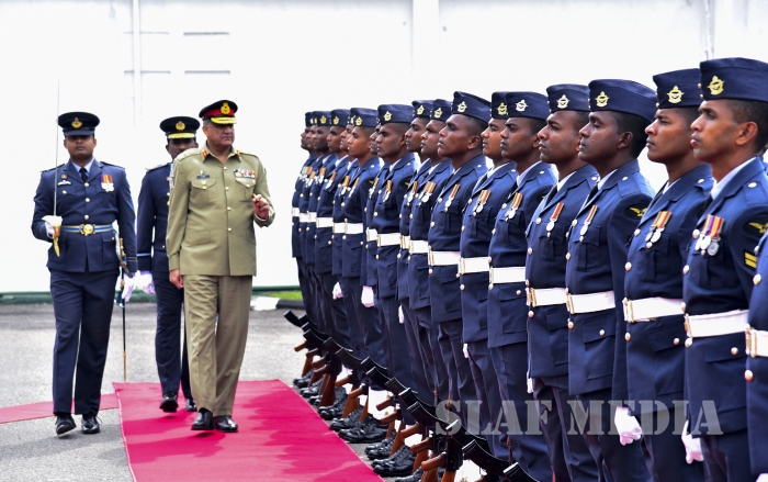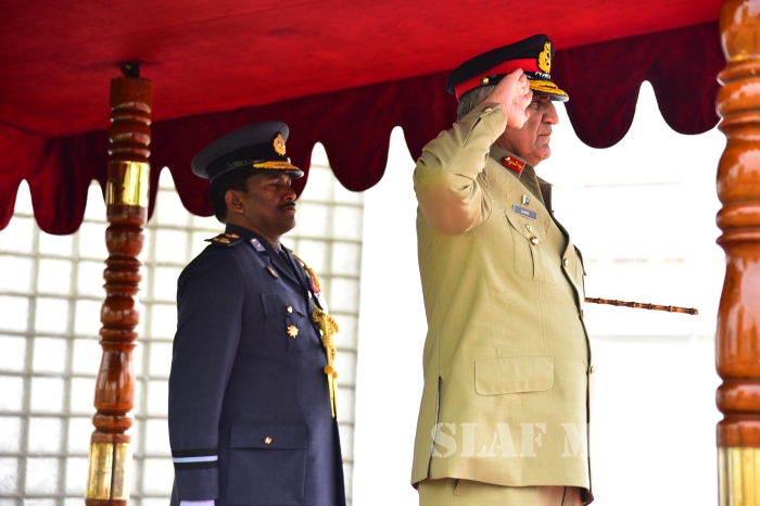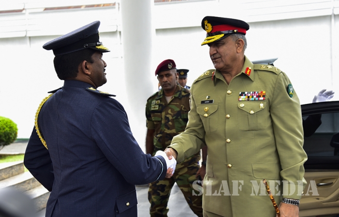 Chief of Army Staff of the Pakistan Army was received upon arrival by the Commanding Officer SLAF Station Colombo Air Commodore Waruna Gunawardana and was conferred a Guard of Honour by the Colour Wing of the SLAF.