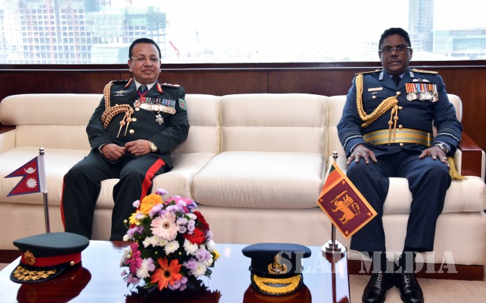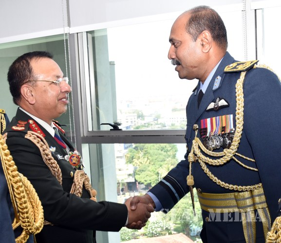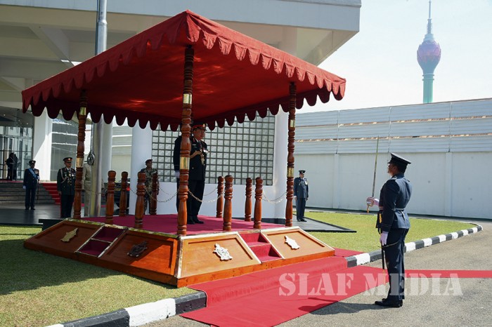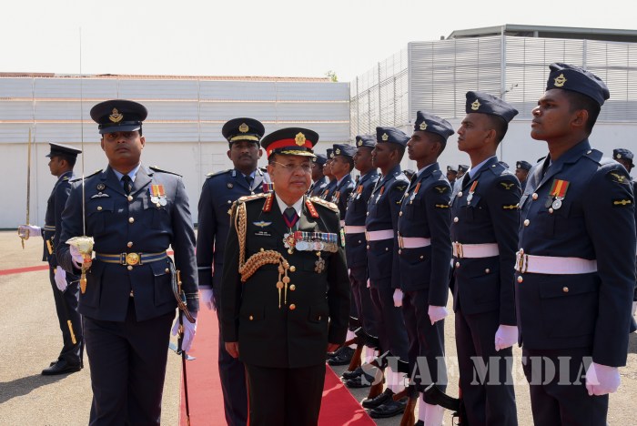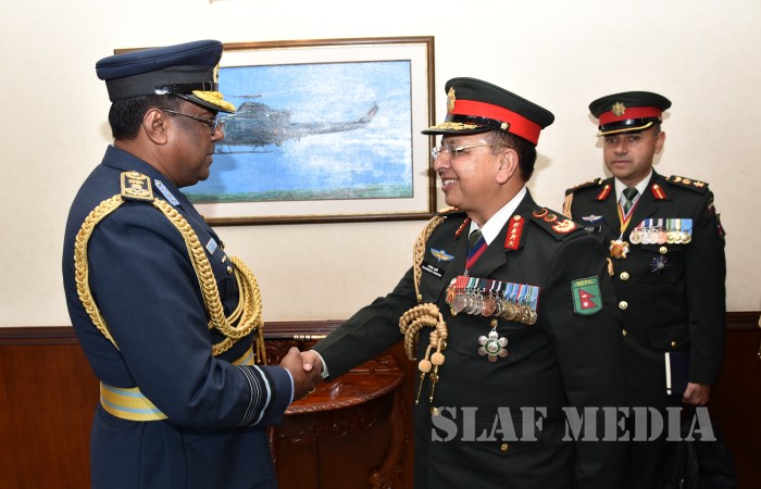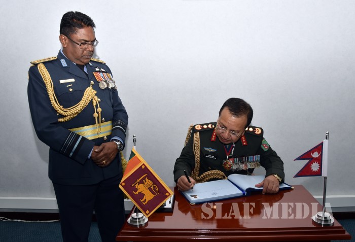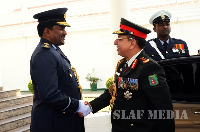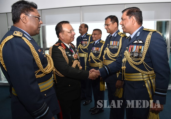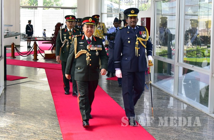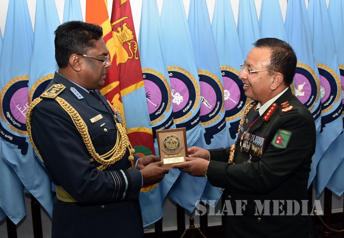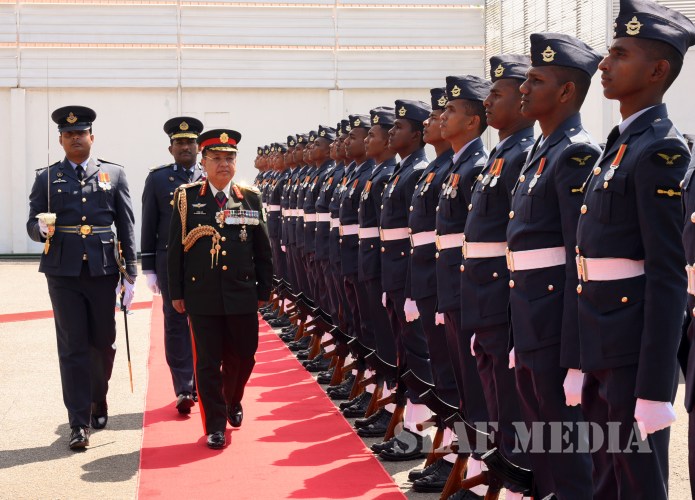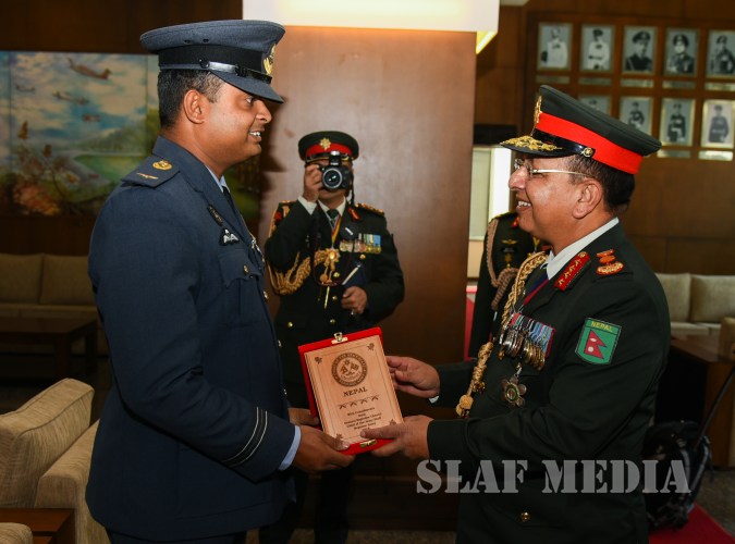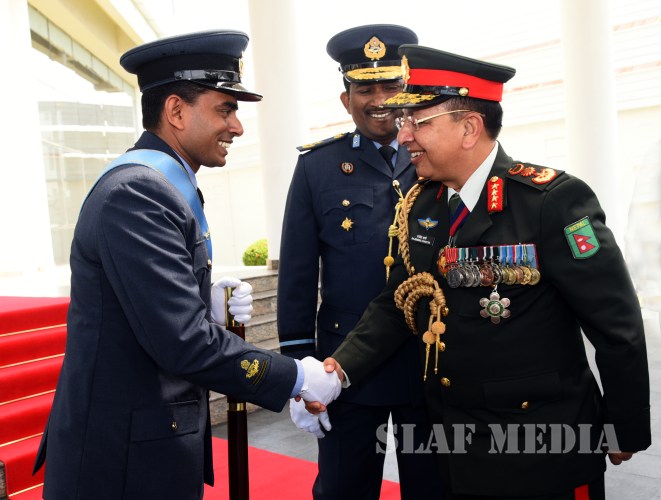 General Rajendra Chhetri was received upon arrival by the Commanding Officer SLAF Station Colombo Air Commodore Waruna Gunawardana and was conferred a Guard of Honour by the Colour Wing of the SLAF.