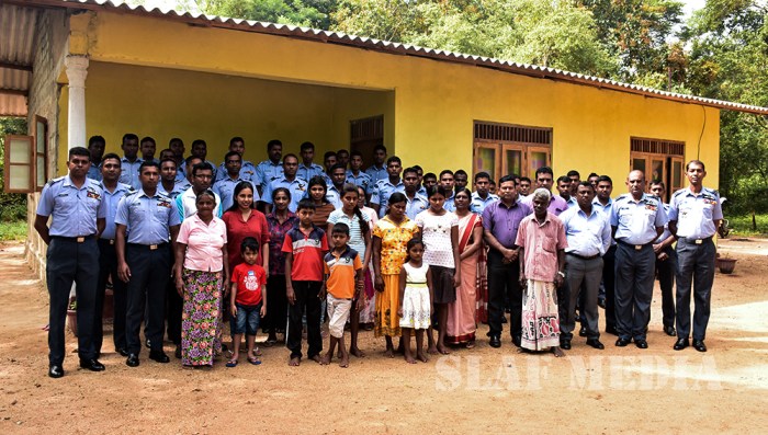 The house was presented to the beneficiary, Mrs. W Dammika, a mother of five children whose husband has left her. The completed 3 bedroom house includes all amenities including proper sanitary facilities and common utilities. Further, No 9 Attack Helicopter Squadron personnel also donated complete furniture and bedding items. Well wishers and Divisional Secretariat, Hingurakgoda provided material requirement of the project.