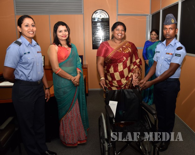 The Chairperson of SLAF SVU Mrs. Anoma Jayampathy handed over 04 wheel chairs donated by LOLC PLC on 02 February 2018 at the Seva Vanitha Unit at AFHQ Colombo to a number of family members of service personnel.