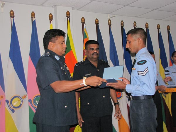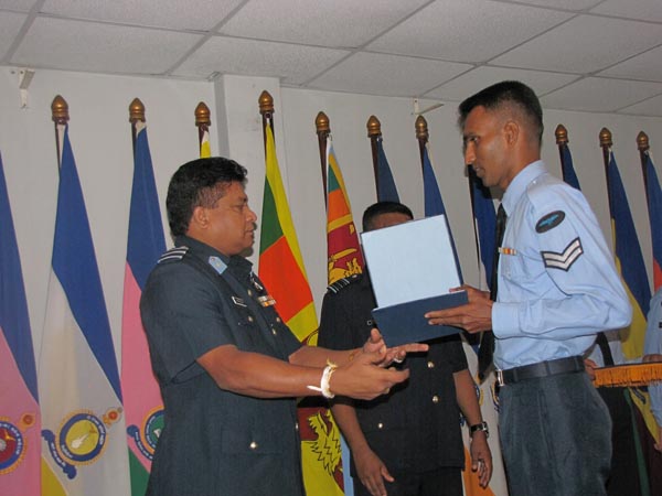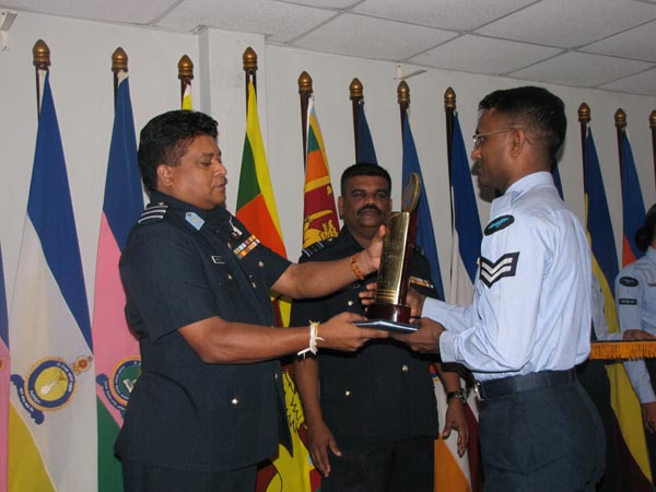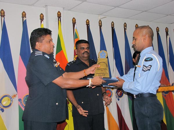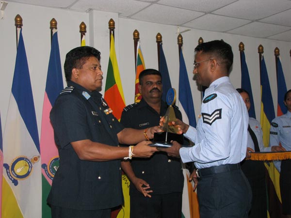 The Awards ceremony was held at the NCO Management School Auditorium at SLAF Base China Bay in which Deputy Director Aeronautical Engineering Air Commodore LHA Silva graced the occasion as the Chief Guest. The Commandant of SLAF Academy China Bay Air Vice Marshal KVB Jayampathy, the Commanding Officer of the No.03 S & MD, Group Captain SAS De Silva, the Commanding Officer of the Junior Command & Staff College Group Captain Sanjaka Wijemanne, Commanding Officer of the No.01 Flying Training Wing, Wing Commander AWSJ Aranayaka, Commanding Officer of the Combat Training School Wing Commander Indrajith Weerasooriya, Commanding Officer of the 24 Regiment Wing, Wing Commander CJ Batagoda were the other distinguished guests present.