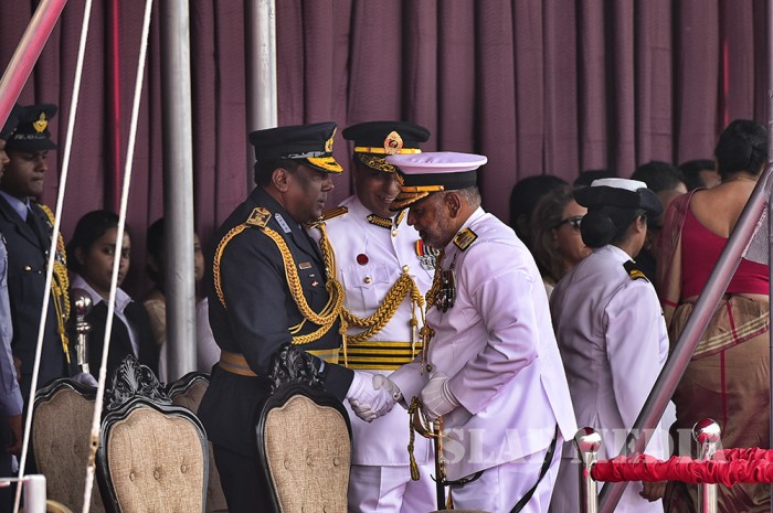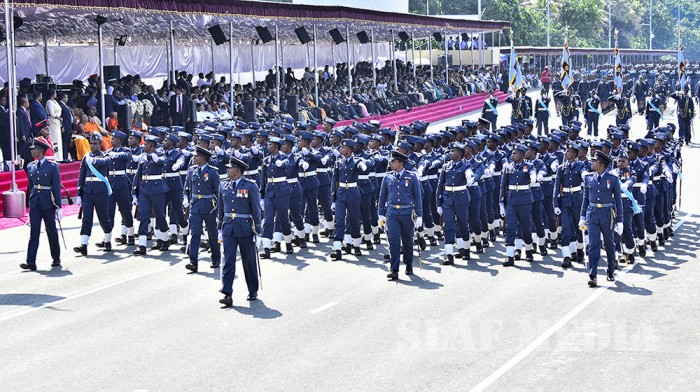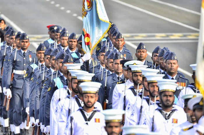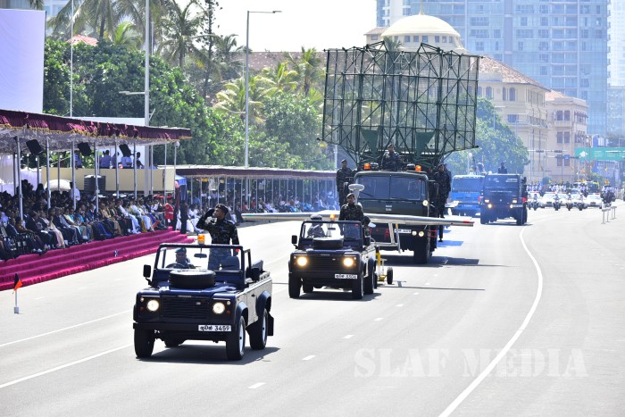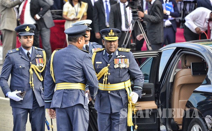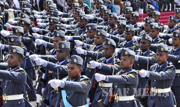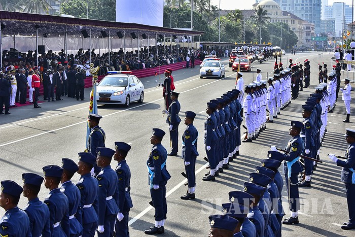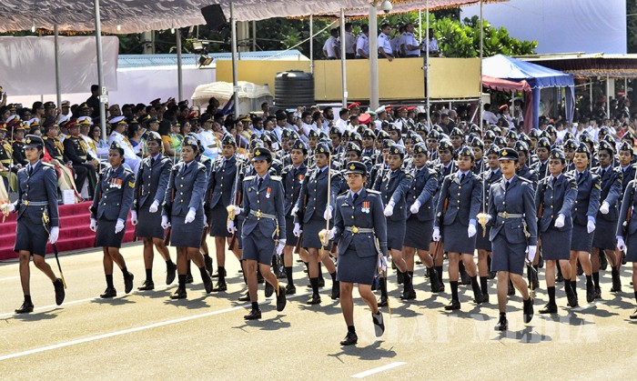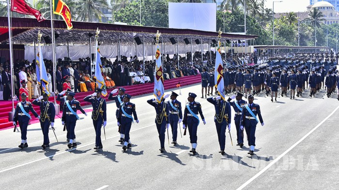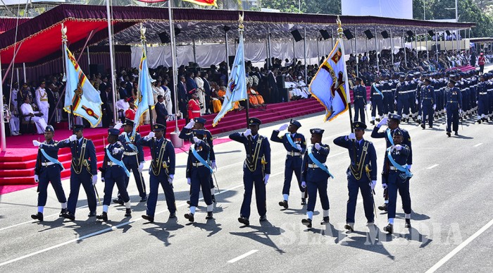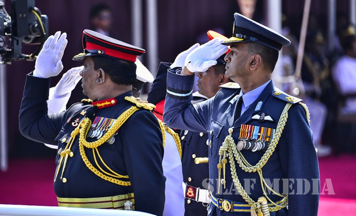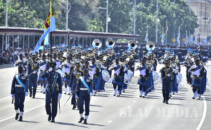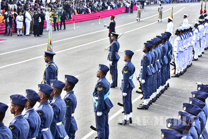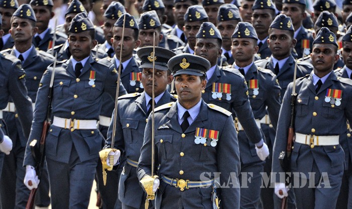 Air Commodore HSS Thuyacontha represented the Sri Lanka Air Force as Overall Parade Commander. 40 Officers, 800 Airmen and Air Women participated in the parade to salute the President. The SLAF parade comprising five Squadrons was commanded by Wing Commander Ananda Kumarasiri while Group Captain Chandana Amarasinghe commanded the tri services ceremonial band at the Parade for the first time in Air Force history. The first squadron was commanded by Squadron Leader Prasad Kulathunga, the second squadron was commanded by Squadron Leader Asela Vithana, the third squadron which was made up of airwomen was commanded by Squadron Leader Viludani Yatawara.