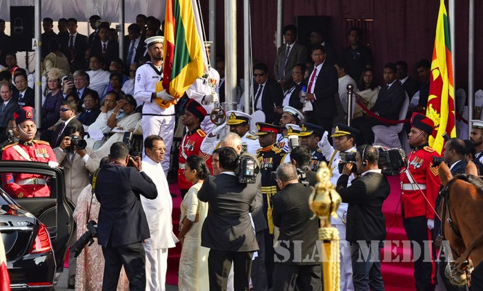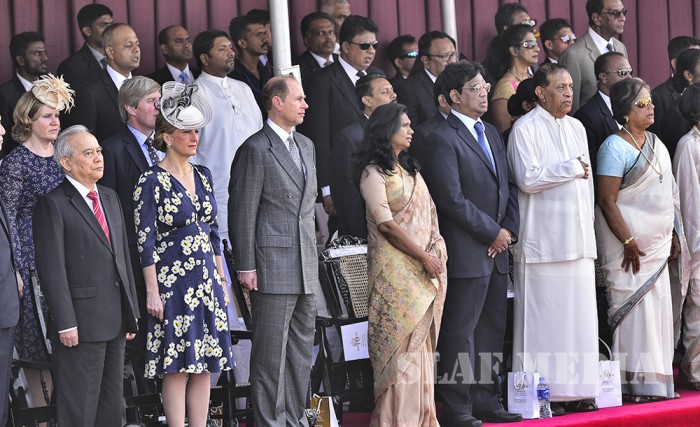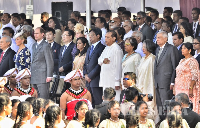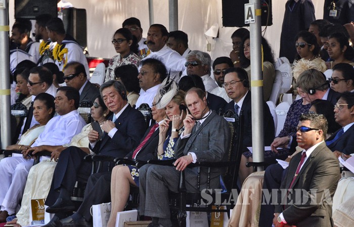 His Excellency the President, Maithripala Sirisena and the First Lady Mrs. Sirisena graced the main event at the Galle Face Green, with the Prime Minister, Prince Edward, Earl of Wessex representing the Queen of England along with Countess of Wessex Sophie Rhys-Jones, the Speaker of Parliment, the Governor of the Western Province, Ministers, the Chief Justice, and Tri-Service Commanders, the Inspector General of the Police, State Secretaries, Diplomats and other distinguished dignitaries also graced the occasion. Religious dignitaries, Ambassadors and a massive crowd of spectators present at the historical venue to witness the proceedings.