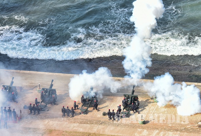 Subsequently, a Guard of Honour followed by a twenty-one gun salute was accorded to the President by the Armed Forces. Thereafter, His Excellency the President delivered the address to the nation.