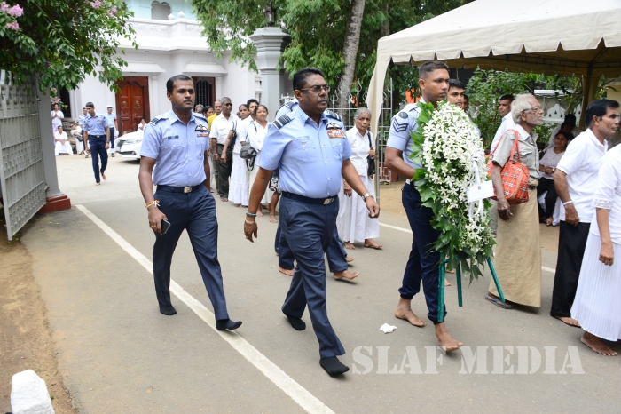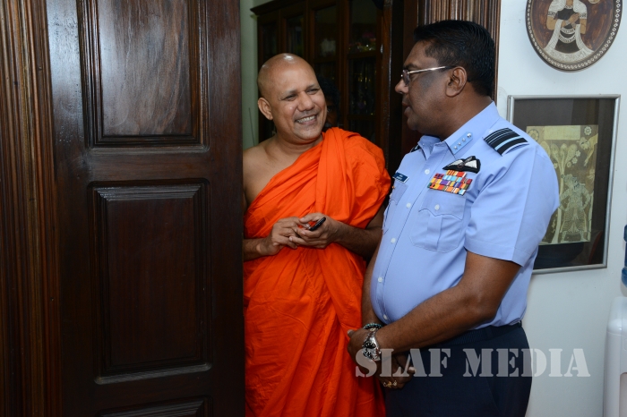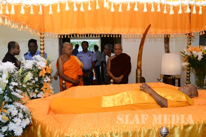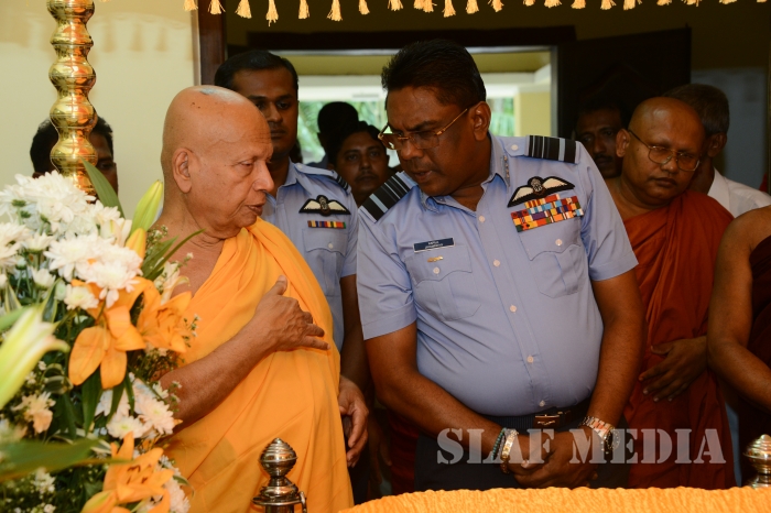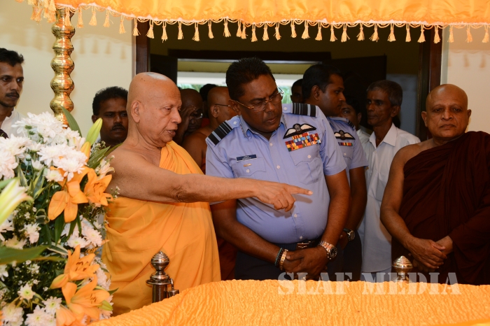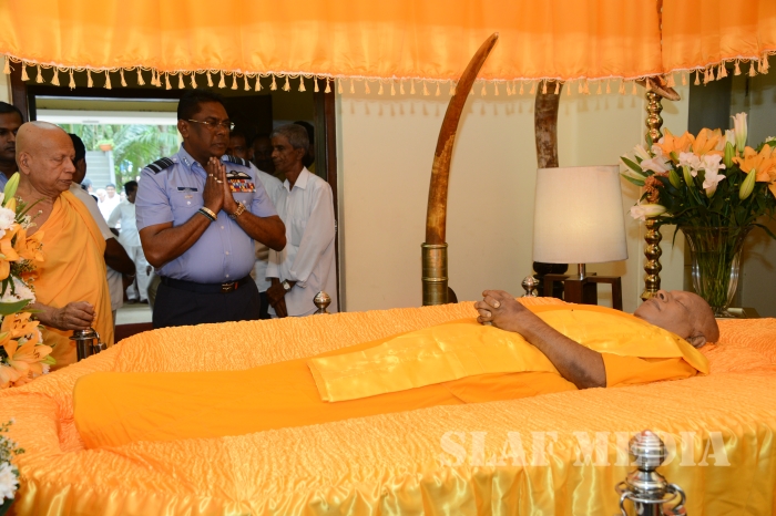 The Commander of the Sri Lanka Air Force Air Marshal Kapila Jayampathy paid his last respects to the late Bellanwila Wimalarathana Thero earlier this evening.