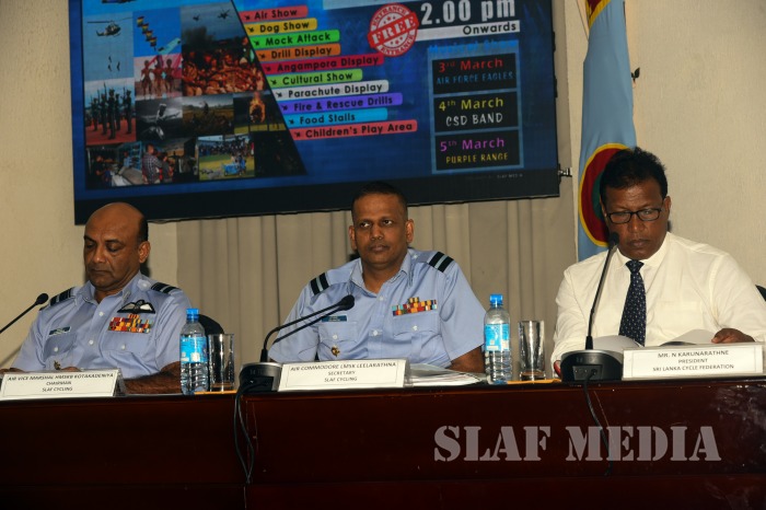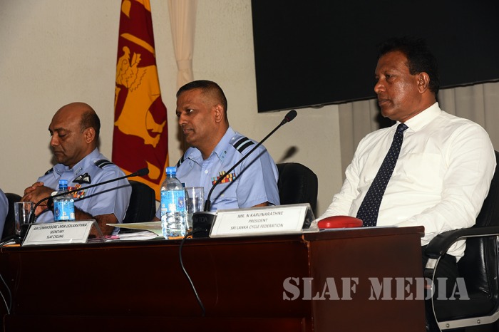 Director Air Operations of the SLAF and Chairman Organizing Committee SLAF 67th Anniversary Celebrations Air Vice Marshal SK Pathirana, Director Logistics of SLAF and Chairman SLAF Cycling Air Vice Marshal HMSKB Kotakadeniya, Secretary Organizing Committee SLAF 67th Anniversary Celebrations Air Commodore VP Balasooriya, Secretary SLAF Cycling Air Commodore LMSK Leelaratne, Director Media of the SLAF Group Captain MDAG Seneviratne, President of Sri Lanka Cycling Federation of Sri Lanka Mr. N Karunarathne, members of Organizing Committee SLAF Cycling and journalists from the electronic and print media were also present at the occasion.