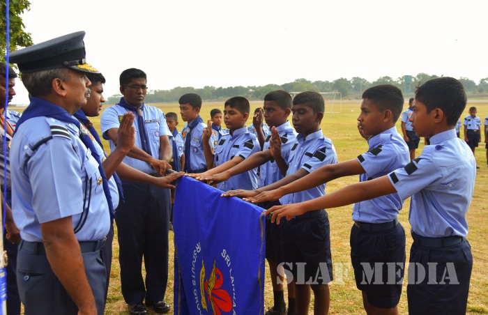 The initial Membership Badge Investiture Ceremony of the Air Scout troop at SLAF Base Anuradhapura was held at base on 24th February 2018 for 49 newly enlisted junior Air Scouts.