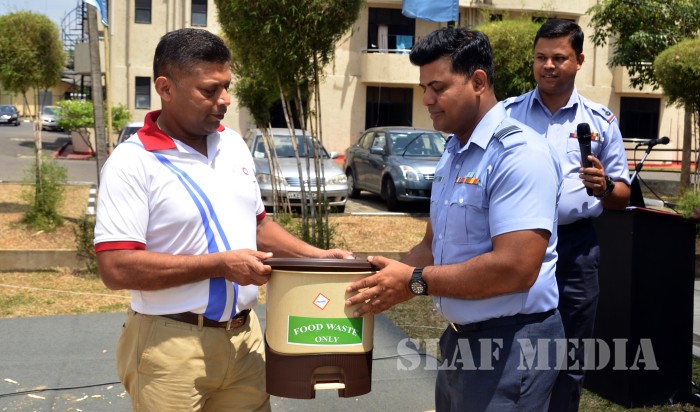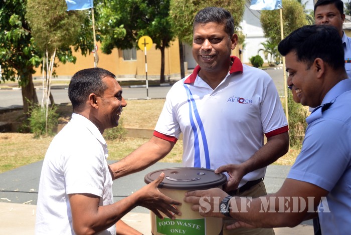 Command Quality Assurance Officer Air Commodore Ranjith Senanayake and many senior officers and their family members, airmen and their families residing at Guwanpura were present for the event. The staff of Officer Commanding Station Services in Colombo Squadron Leader Suresh Fernando and personnel of the Command Quality Assurance Inspectorate assisted and distributed the solid waste bins designed for organic food waste management.