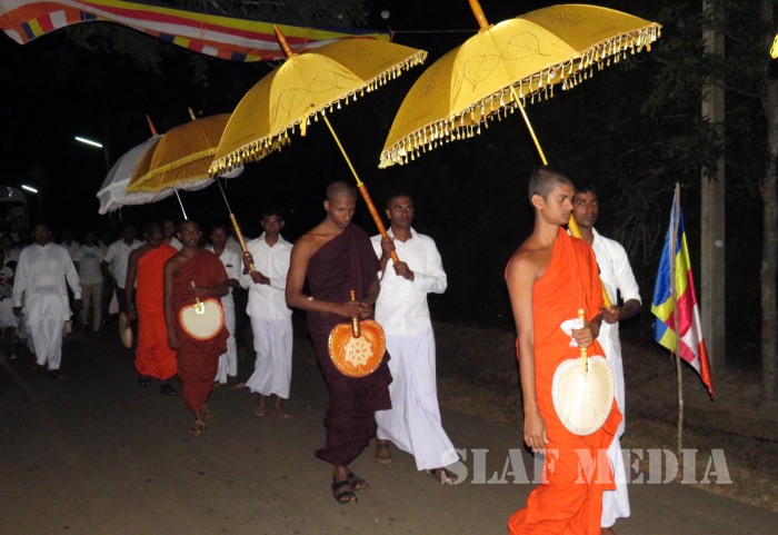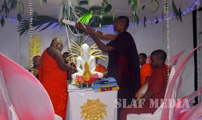 The Pirith Chanting was followed by an alms giving for 12 venerable Maha Sangha and the reliquary was taken to the School Premises in a colorful procession. The event was attended by Officers, Other Ranks, all trainees and civilians staff of SLAF Station Iranamadu.