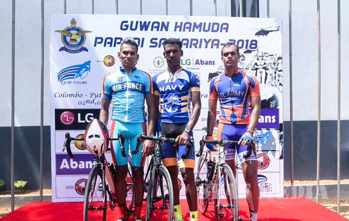 The second day of the 19th Guwan Hamuda Papedi Sawariya ended in front of the SLAF Base Hingurakgoda today covering a distance of 172.6 km. Sri Lanka Navy cyclist Janaka Hemantha won the 2nd leg of Guwan Hamuda Papedi Sawariya while Lakshman Wijerathne of Sri Lanka Army and Buddika Warnakulasooriya of Sri Lanka Air Force finished in second and third respectively.