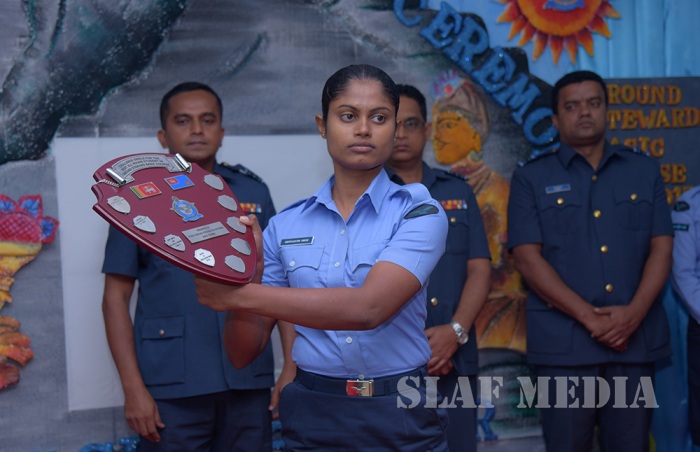 The trophy for the Best Student of the Catering Assistants’ Basic Course was awarded to Leading Aircraftman Sampath RLLAS and the trophy for the best student of the Ground Stewards’ Basic Course was awarded to Air Craftwoman Amarajeewa BMSM.