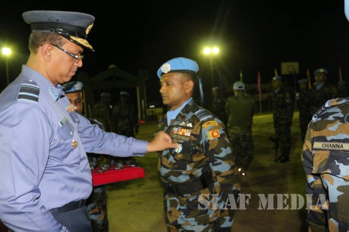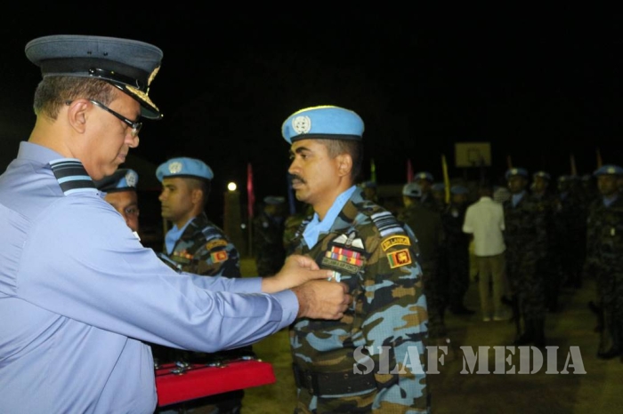 The third contingent of the Sri Lanka Aviation Unit of the United Nations Missions in South Sudan (UNMISS) reached another landmark in its successful journey when it held the UN peace keeping “Medal Awarding Ceremony” on 23rd March 2018. A total of 85 airmen and 19 Officers including the contingent Commander Wing Commander Prassanna Kuruwita received their UN Peacekeeping Medals during the parade.