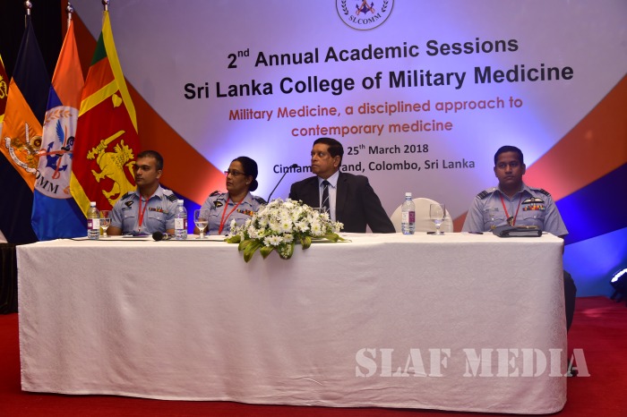 The second Annual Academic Session- 2018 of the Sri Lanka College of Military Medicine (SLCOMM) was inaugurated at the Cinnamon Grand Hotel in Colombo on 23rd of March 2018. The event was graced by the Presidential Secretary, Mr. Austin Fernando. The Secretary to the Ministry of Defence Mr. Kapila Waidyaratne PC attended the event as a special guest.