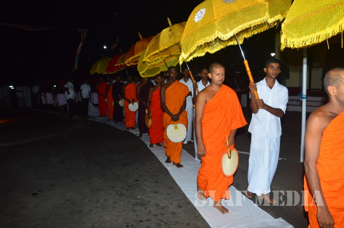 The Pirith Chanting was followed by an alms giving for Venerable Maha Sangha and the reliquary was taken to the Academy Premises in a colorful procession. The event was attended by Commanding Officers of the Lodger Formations, Officers, Other Ranks, all trainees, civilian staff along with their family members.