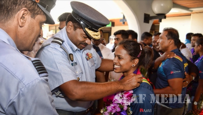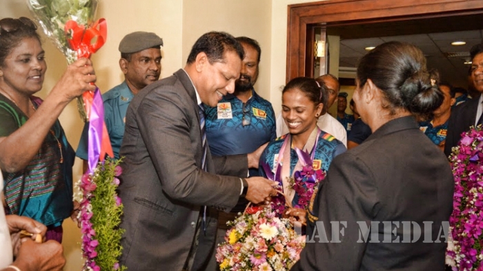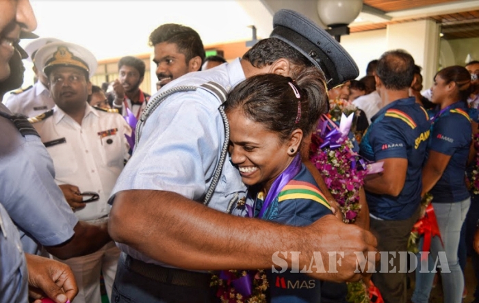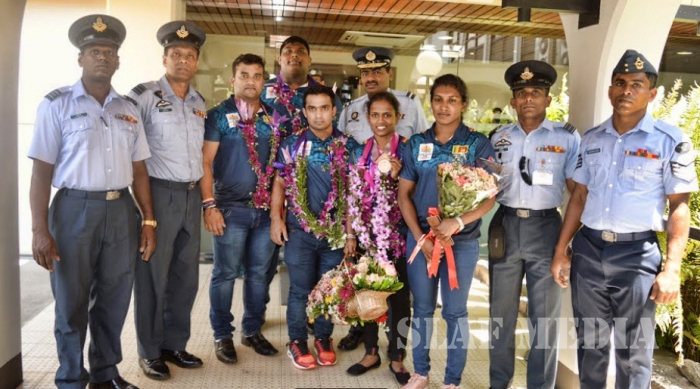 Sri Lanka Air Force Weightlifters who represented Sri Lanka as part of the National Team at the Commonwealth Games 2018 at Gold Coast, Australia returned to the Island on 11th April 2018 to a rousing welcome at the Bandaranaike International Airport, Katunayake.