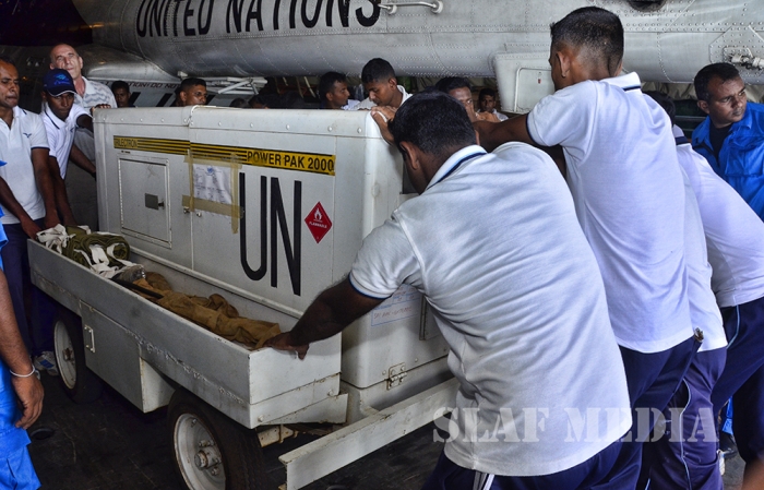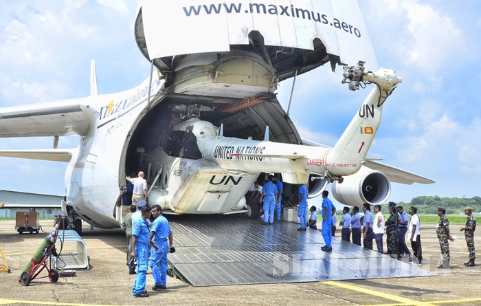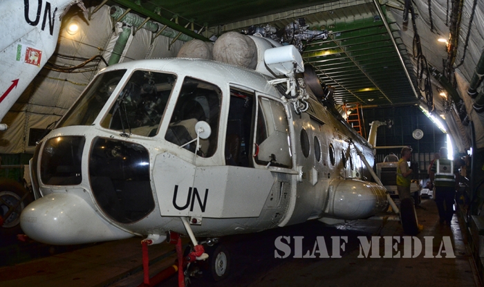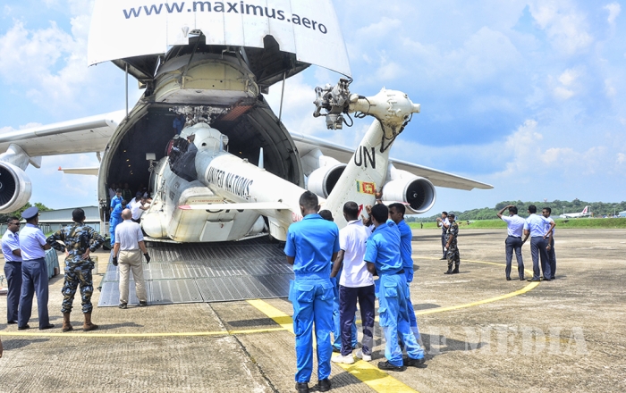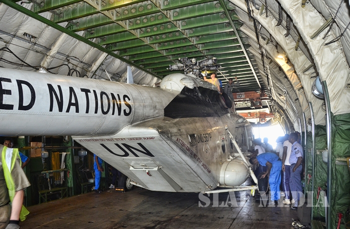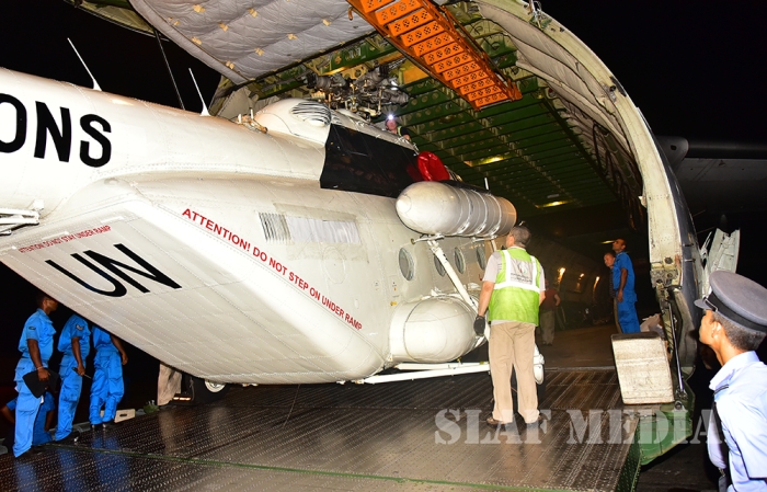 The first helicopter rotation of two MI-17 helicopters to and from SLAF Aviation Contingent in South Sudan (UNMISS) was completed successfully from 19 to 22 April 2018 through a UN provided AN-124 aircraft. These two Mi-17 helicopters were deployed for UN peacekeeping missions since 2015 and were eligible for rotation after serving the required period in the mission. The aircraft rotation was coordinated through SLAF UN Mission Cell under the supervision of C of S, DAO and DAE and the entire operation was done at Entebbe, Uganda.
